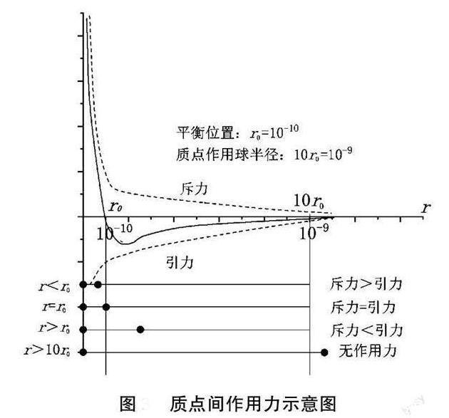 由熔體作用力理論可知,組成熔體的質(zhì)點(diǎn)間存在著作用力。當(dāng)質(zhì)點(diǎn)處于平衡位置時(shí),即質(zhì)點(diǎn)間距r=r0(r0=10-10)時(shí),引力等于斥力,質(zhì)點(diǎn)間作用力為0;質(zhì)點(diǎn)間距r>r0,作用力為引力;質(zhì)點(diǎn)間距r<r0,作用力為斥力;當(dāng)質(zhì)點(diǎn)間距r>10r0時(shí),引力和斥力均為0,如上圖所示。