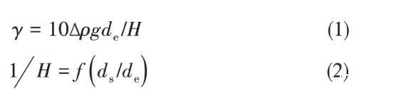 式中,γ為界面張力,mN/m;,Δρ為兩相密度差,kg/m3;g為重力加速度,g=9.80 m/s2;de為懸滴最大直徑,m。油滴尺寸如圖1標注,ds為距油滴頂點垂直距離為de處油滴截面直徑,m。1H可由Andreas等建立的函數(shù)表得到。