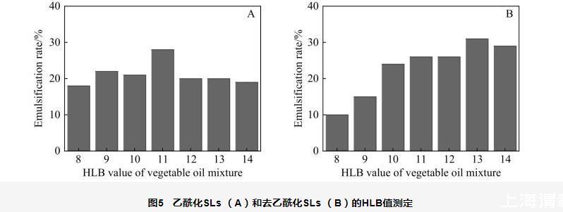 圖5乙?;疭Ls(A)和去乙?;疭Ls(B)的HLB值測定