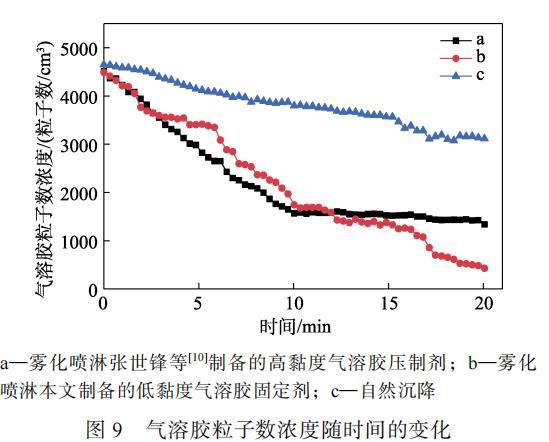 a—霧化噴淋張世鋒等制備的高黏度氣溶膠壓制劑;b—霧化噴淋本文制備的低黏度氣溶膠固定劑;c—自然沉降