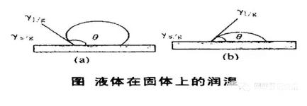 接觸角就是停留在固體表面的液滴,形成固、液、氣三個界面,做氣/液界面的切線,與經(jīng)過液體內(nèi)部和固體表面的夾角。
