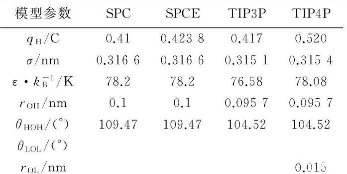 表1水分子模型參數