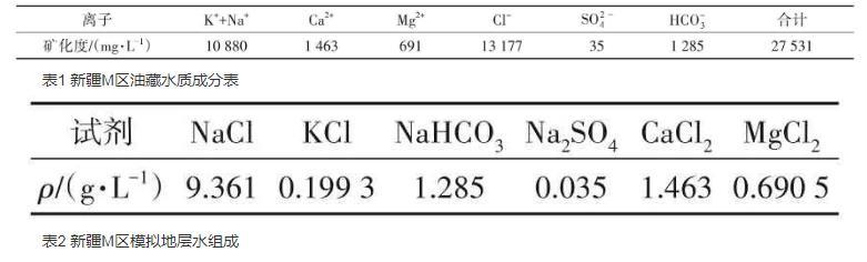 實(shí)驗(yàn)用水為新疆M區(qū)油藏模擬地層水,M區(qū)