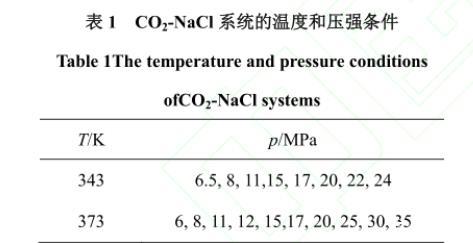 本文根據Chalbaud等對CO2-NaCl系統大范圍溫度及壓強下的IFT實驗研究結果,選擇了溫度及壓強范圍為343~373 K和6~35 MPa的CO2-NaCl系統為研究對象。具體工況參數列于表1。
