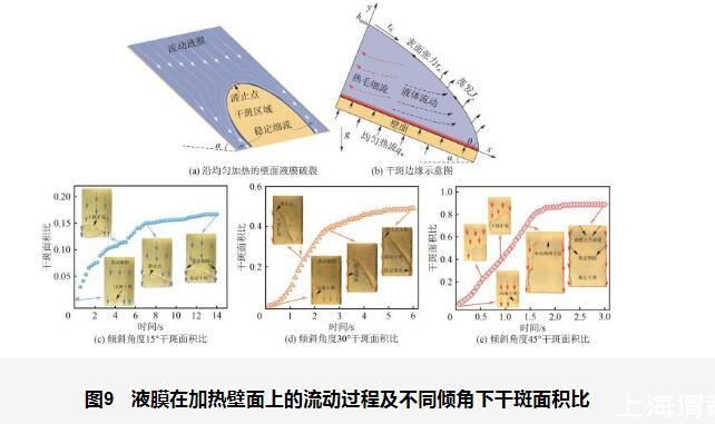 圖9液膜在加熱壁面上的流動過程及不同傾角下干斑面積比