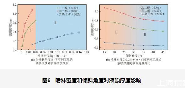 圖6噴淋密度和傾斜角度對液膜厚度影響