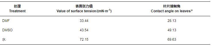 表1液體的表面張力值及其在芒果葉片上的接觸角
