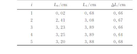 由表1可得:彈簧伸長量的平均值ΔL=0.65 cm,代入式(3),計算可得蒸餾水的表面張力系數α=(68.08±2.72)×10?3N/m。15℃時水的表面張力系數標準值為73.5×10?3N/m。因此,該實驗結果的相對偏差E_r=5.98%。