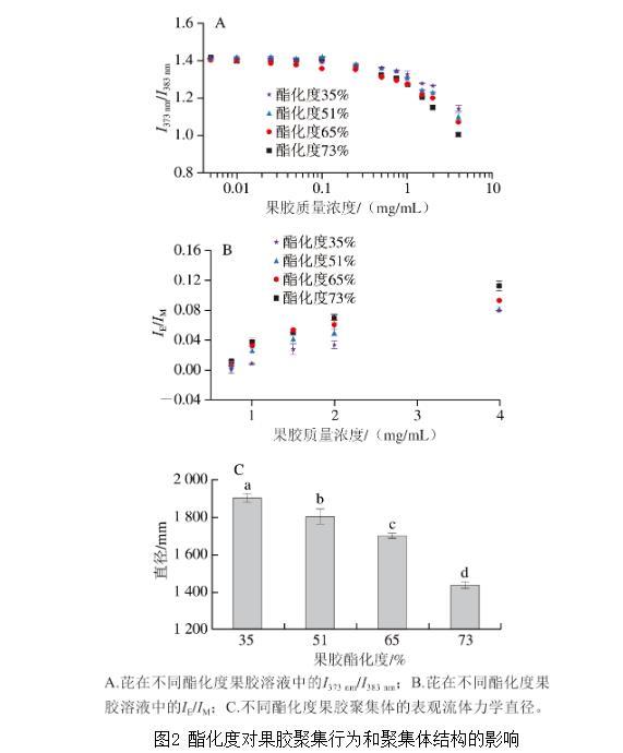 圖2酯化度對果膠聚集行為和聚集體結構的影響
