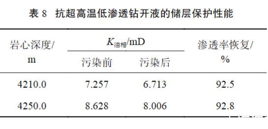 表8抗超高溫低滲透鉆開液的儲層保護性能