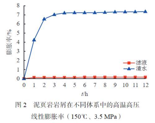 圖2泥頁巖巖屑在不同體系中的高溫高壓線性膨脹率(150℃、3.5 MPa)