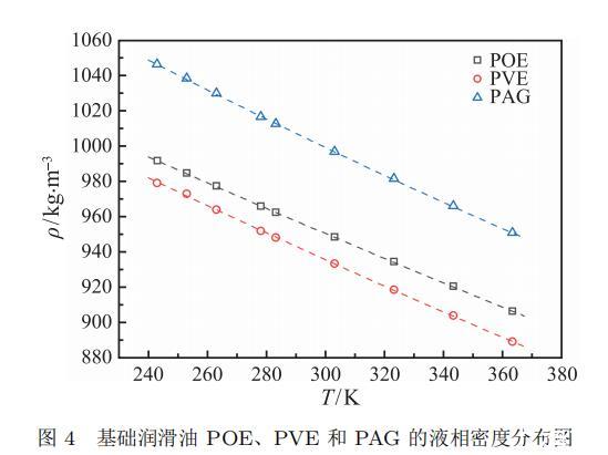 圖 4 基礎(chǔ)潤(rùn)滑油 POE、PVE 和 PAG 的液相密度分布圖