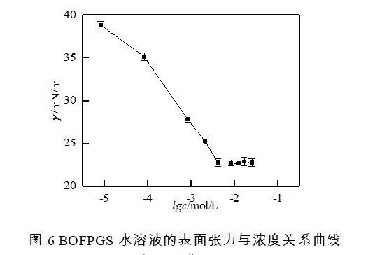 圖6 BOFPGS水溶液的表面張力與濃度關(guān)系曲線