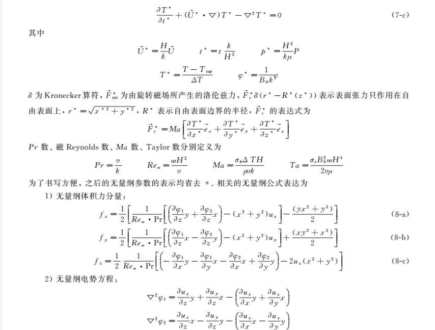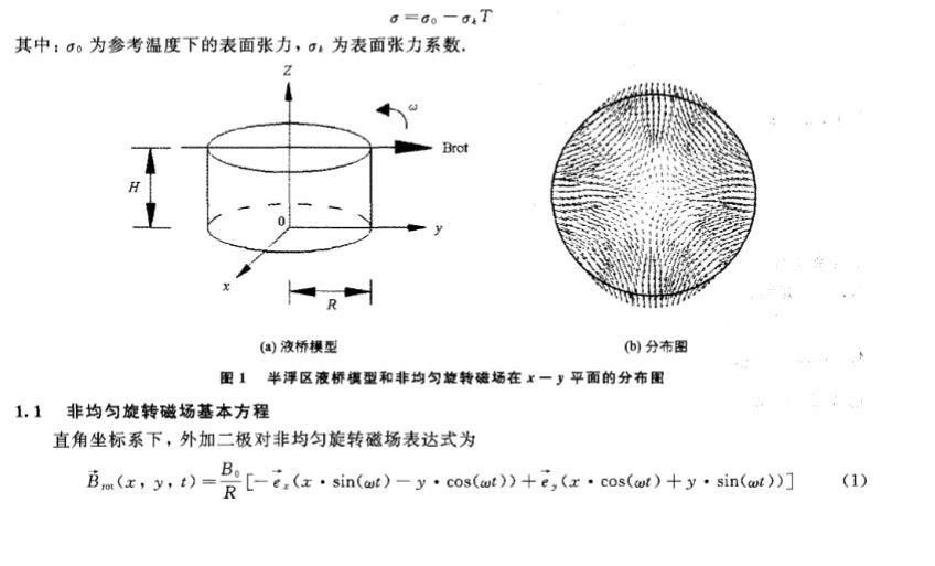 基于浮區(qū)法晶體生長中非均勻旋轉磁場對流控制研究工作鮮有的現(xiàn)狀,為了進一步完善外加旋轉磁場對浮區(qū)熔體的對流控制的理論研究,筆者引用了有限長-α模型的思想,建立了三維磁流體動力學模型,研究了微重力下外加二極對非均勻旋轉磁場對浮區(qū)熔體表面張力對流的控制作用。