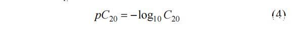 式(4)中給出的pC20值(C20是將溶劑表面張力降低20 m所需的濃度?納米?1[27]),隨著α1的增加而增加。
