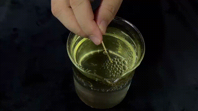 不過要小心,如果牙簽觸碰到了水滴的底部,水滴就會破裂下沉