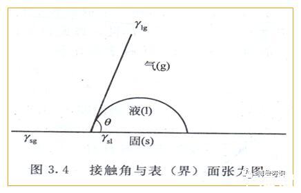 θ反應了液體與固體表面親和作用大小,親和力越強越易于在表面上展開,θ越小。
