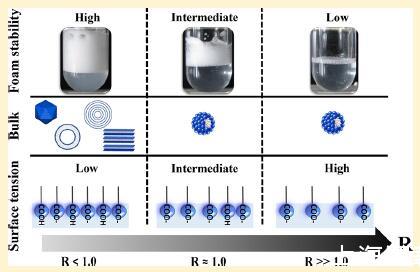 為了研究本體自組裝、界面性能變化和泡沫性能隨R的變化之間的相關(guān)性,我們通過結(jié)合不同長度尺度的實驗和技術(shù)進行了多尺度研究,以解釋宏觀泡沫性能,特別是泡沫穩(wěn)定性。利用小角度中子散射研究了泡沫液體通道內(nèi)的聚集結(jié)構(gòu)。通過耦合表面張力和中子反射率測量確定表面性質(zhì)。