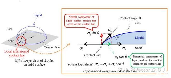 分別為氣液、氣固和液固界面張力。在X方向的力平衡方程,玻璃本身是親水性的(當(dāng)然如果表面做憎水處理),因此