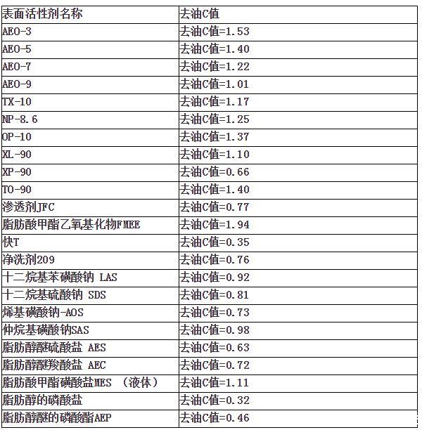 各種表面活性劑除油性能對比