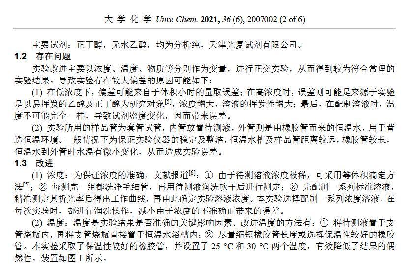 【摘要】:最大氣泡壓力法測(cè)定溶液表面張力是物理化學(xué)實(shí)驗(yàn)中的一個(gè)傳統(tǒng)實(shí)驗(yàn),由于各種因素的影響,導(dǎo)致學(xué)生實(shí)驗(yàn)結(jié)果存在較大偏差。本研究通過(guò)濃度、溫度等作為變量進(jìn)行實(shí)驗(yàn)條件探索而得到的結(jié)果與文獻(xiàn)值較為吻合。