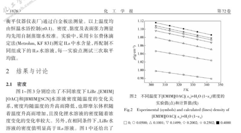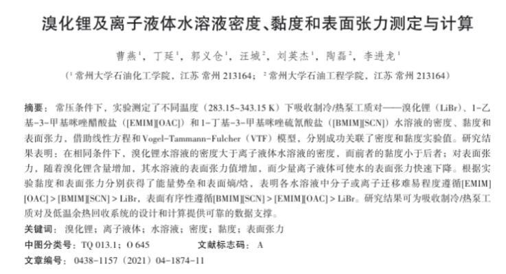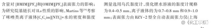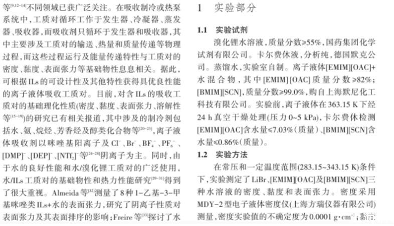 溴化鋰及離子液體水溶液密度、黏度和表面張力測定與計(jì)算