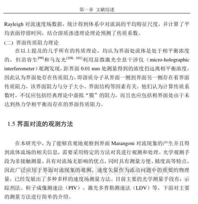 首先,研究了在液相中添加三種不同臨界膠束濃度的表面活性劑對氣液比表面積和傳質系數的影響。實驗結果表明,表面活性劑在氣液界面聚集,會增大氣液比表面積,但由于膠束現象的存在,會減小CO2吸收的總包傳質系數和液相傳質系數,因此臨界膠束濃度是表面活性劑的一個重要參數。其次,研究了向氣相加入低表面張力物質(乙醇和正丙醇)對氣液兩相傳質的影響,并探討增強傳質過程的途徑。氣相低表面張力物質的添加,使液體表面出現了局部流動現象。通過高速攝像技術進行拍攝,并采用軟件進行處理,得到了局部Marangoni對流現象的速度分布。進而證實了在氣相中添加低表面張力物質能夠誘導產生局部Marangoni對流現象。然后利用鼓泡塔傳質裝置,研究了氣相中加入少量乙醇對水-CO2吸收過程傳質的影響。CO2氣體中添加少量乙醇后,鼓泡塔中的氣泡尺寸變大,氣泡比表面積變小,而液相傳質系數增大,綜合結果促進了氣液傳質。