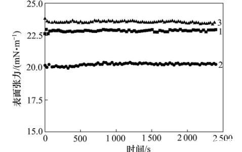 圖1 120℃和4 MPa下稠油動態表面張力變化圖