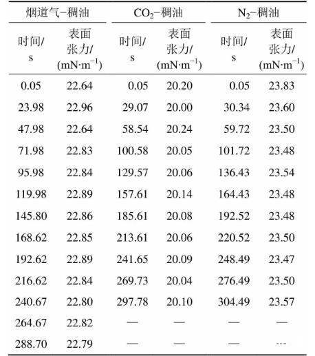 煙道氣?稠油系統表面張力變化規律